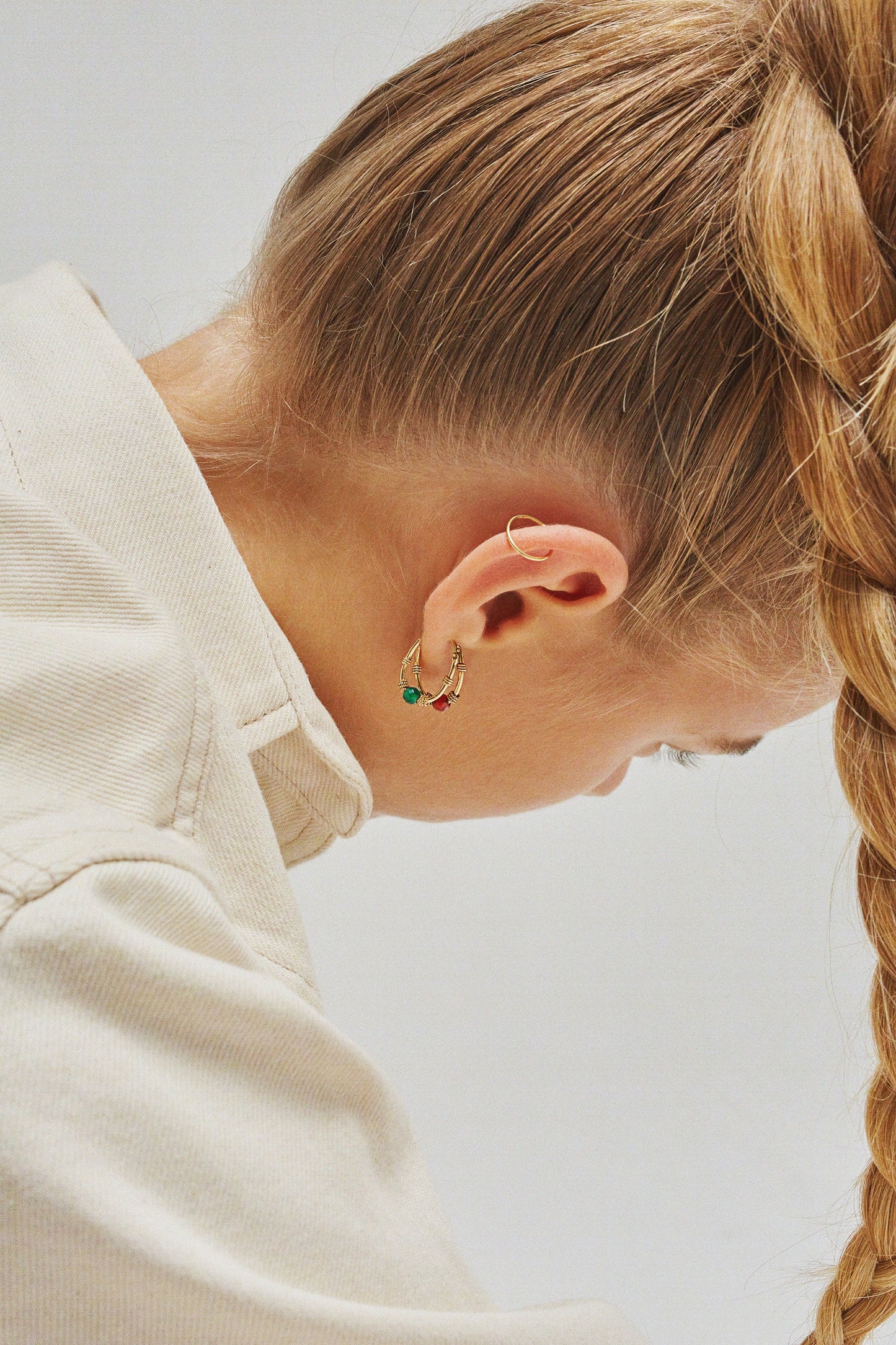 ZINC est une paire de boucles d'oreilles en vermeil, ornée d'une pierre semi-précieuse (onyx vert foncé).