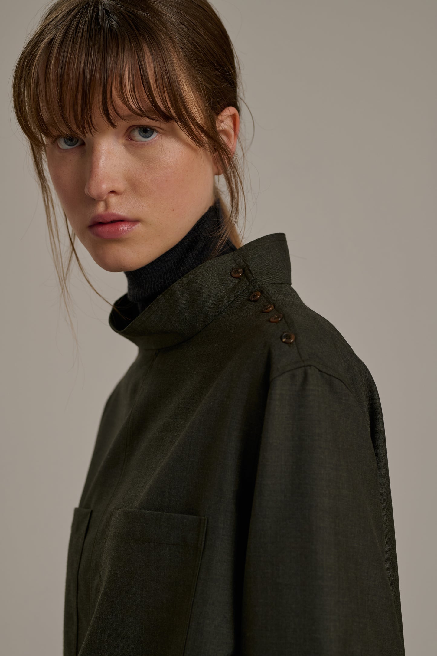 Blouse en toile de laine chinée kaki