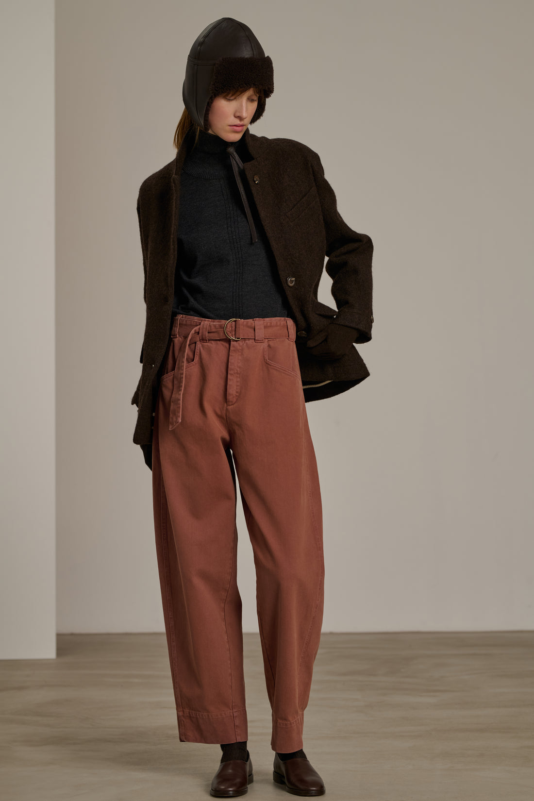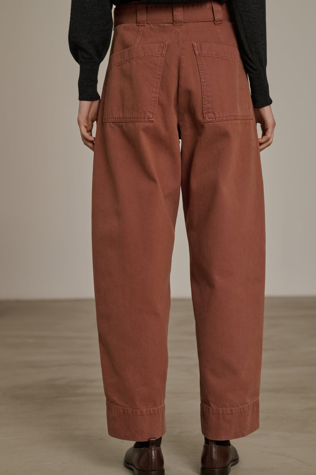 VOLAGE est un jean taille haute qui s'ajuste grâce à une large ceinture coulissante. La toile de coton épaisse accentue son volume arrondi. Il est reconnaissable par ses poches à la découpe en biais. Les jambes sont volontairement longues pour varier les longueurs et pouvoir le porter retroussé.