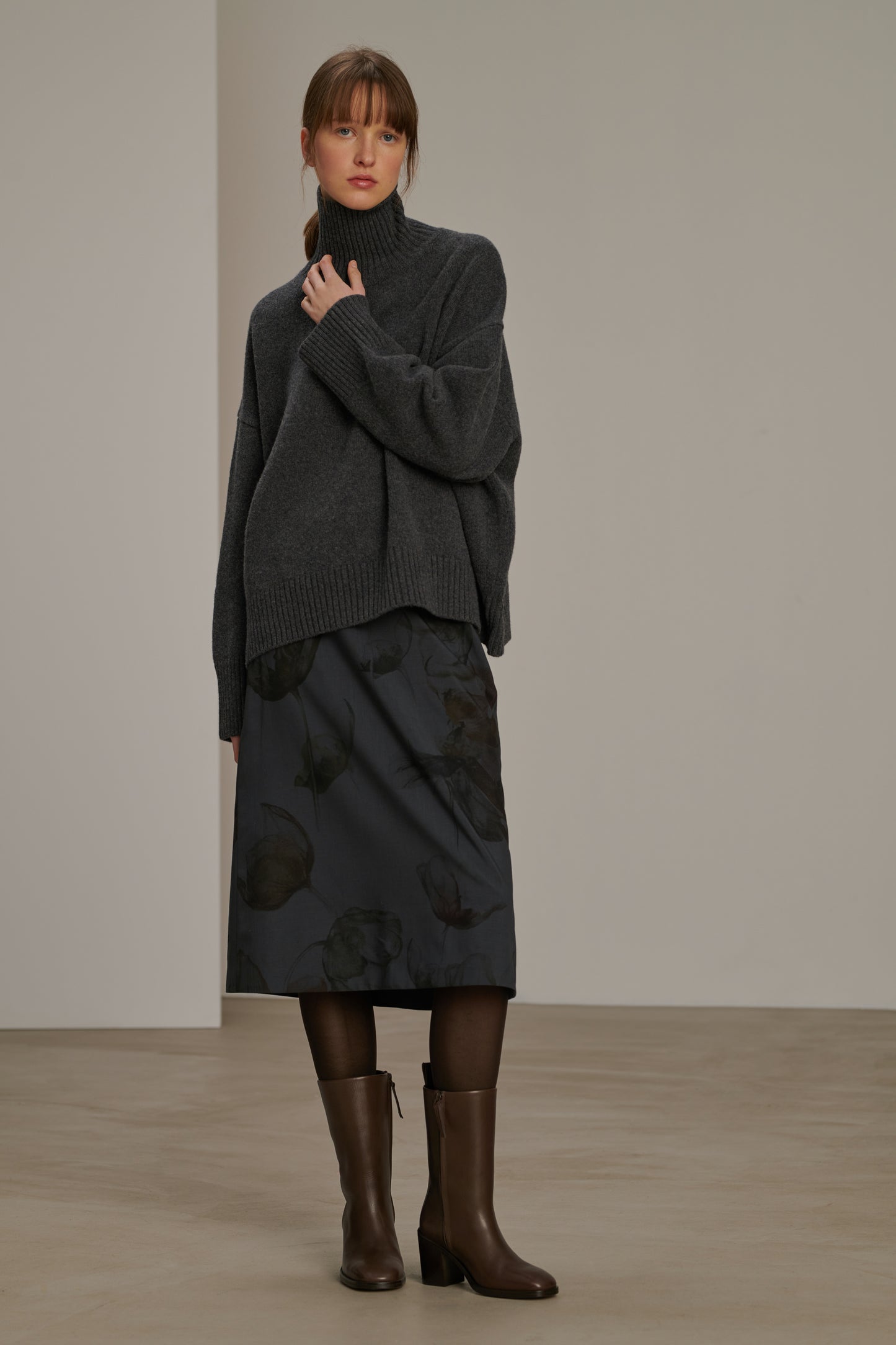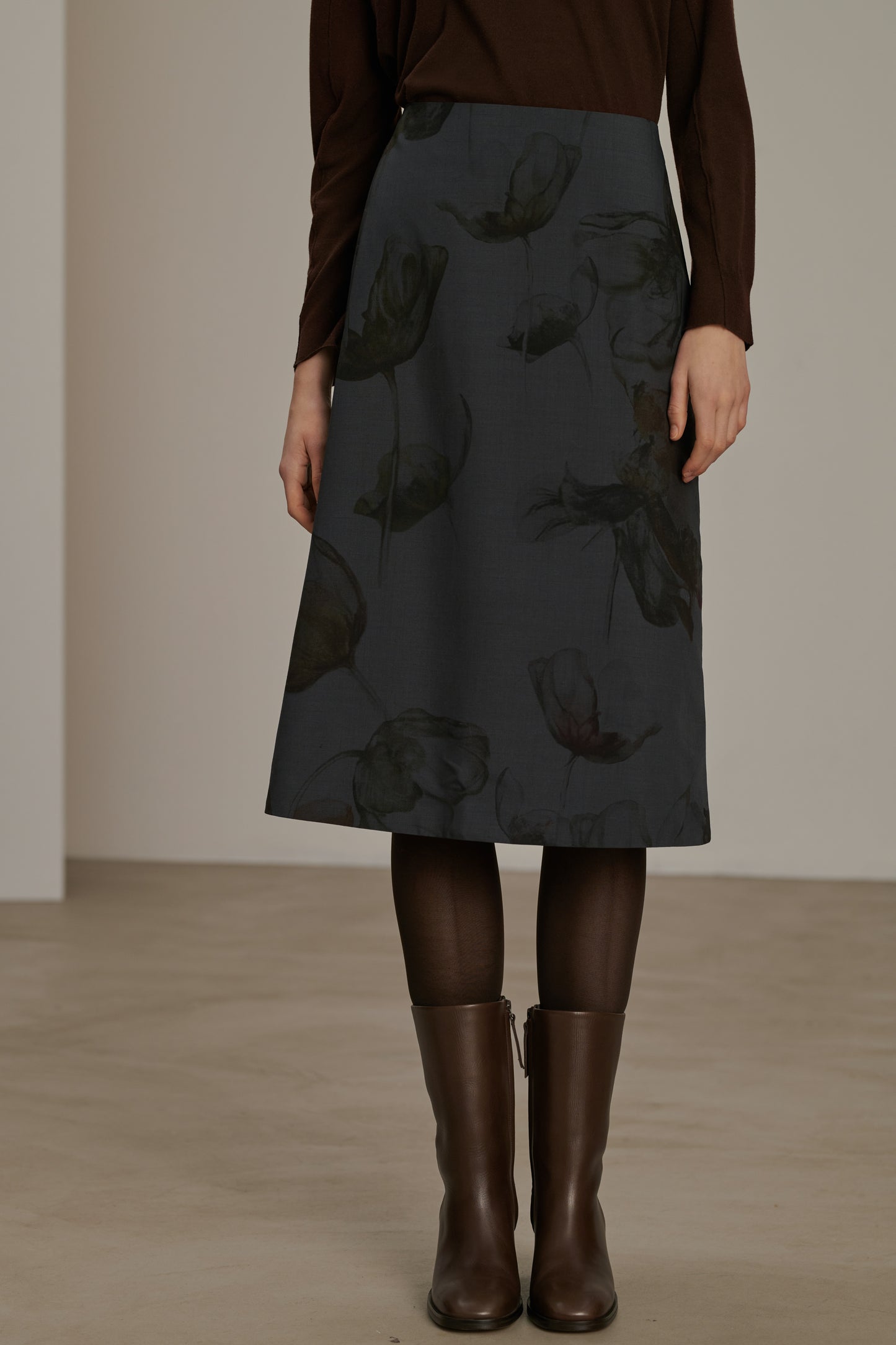 Jupe en toile de laine imprimée gris anthracite