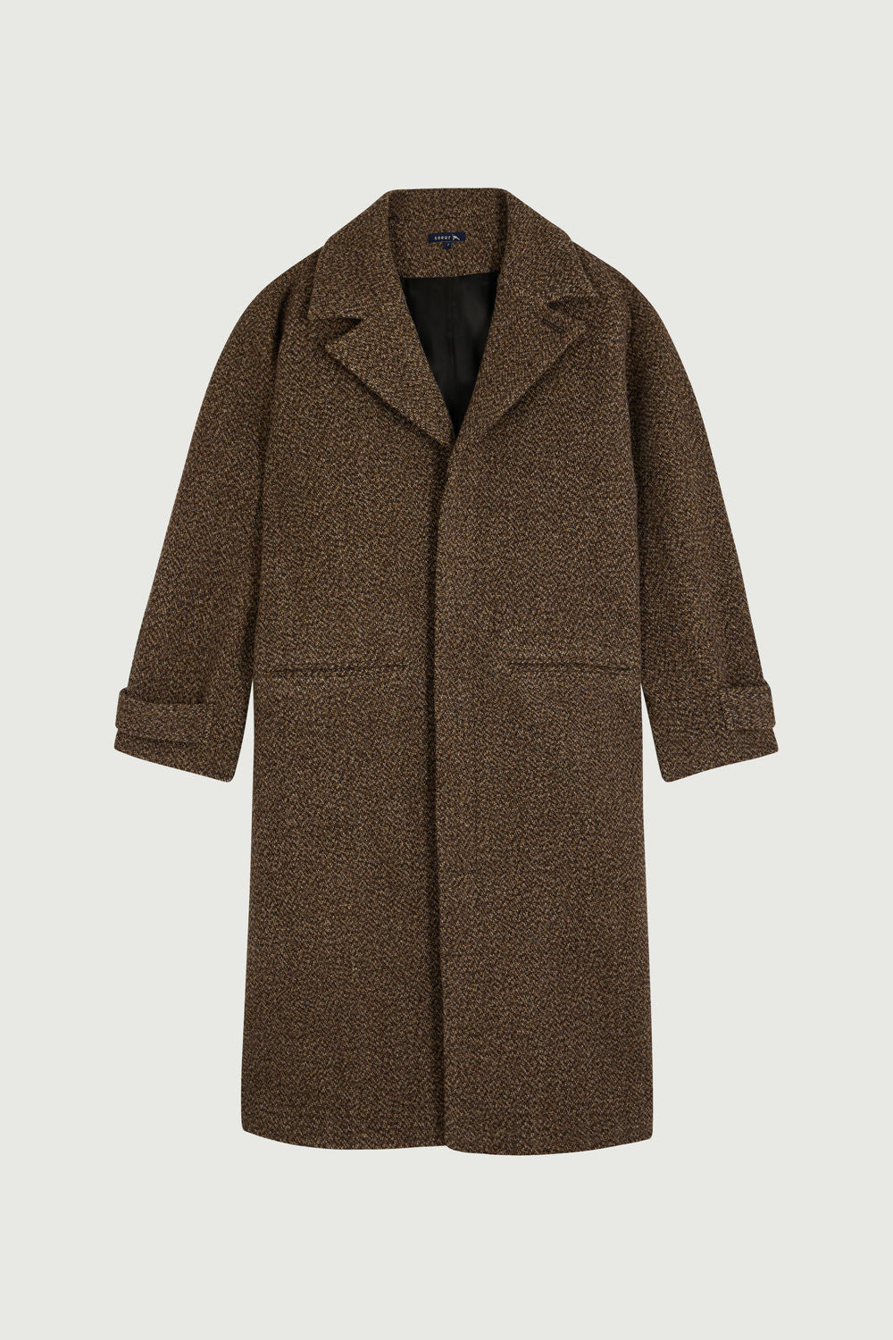 BRIGHTON est un manteau à la coupe ample en lainage. Doté de manches raglan il adoucit la silhouette, et peut se porter avec le col ouvert ou fermé offrant différents styles. L’ouverture à patte de boutonnage cachée et les deux poches passepoilées ajoutent une touche épurée. Faussement uni, il s'associe facilement aux couleurs de saison.
