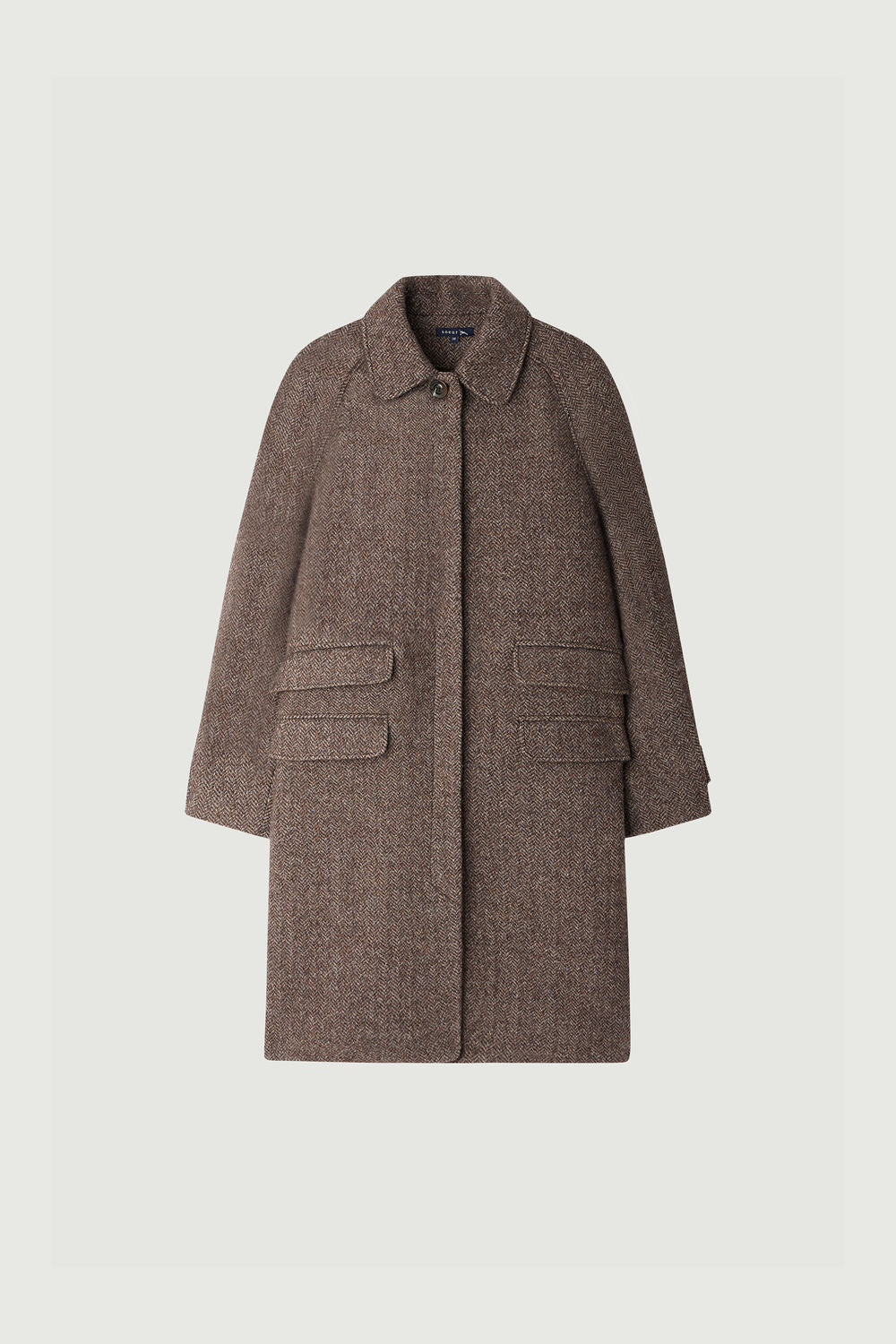 SIMBA est un manteau en lainage chevron. Doté de manches raglan coudées, il associe confort et allure. Le col classique et la patte de boutonnage cachée ajoutent une touche de raffinement. Avec ses quatre poches à rabat pratiques et les pattes de serrage boutonnées aux poignets, SIMBA en lainage boutonné est à la fois fonctionnel et sophistiqué.