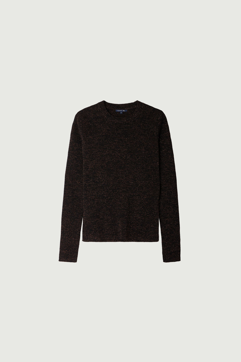 VERONA est un pull à côtes tricoté dans un fil de laine mérinos, mélangé à du lurex pour un effet irisé. Sa coupe est droite, près du corps, son encolure ronde.