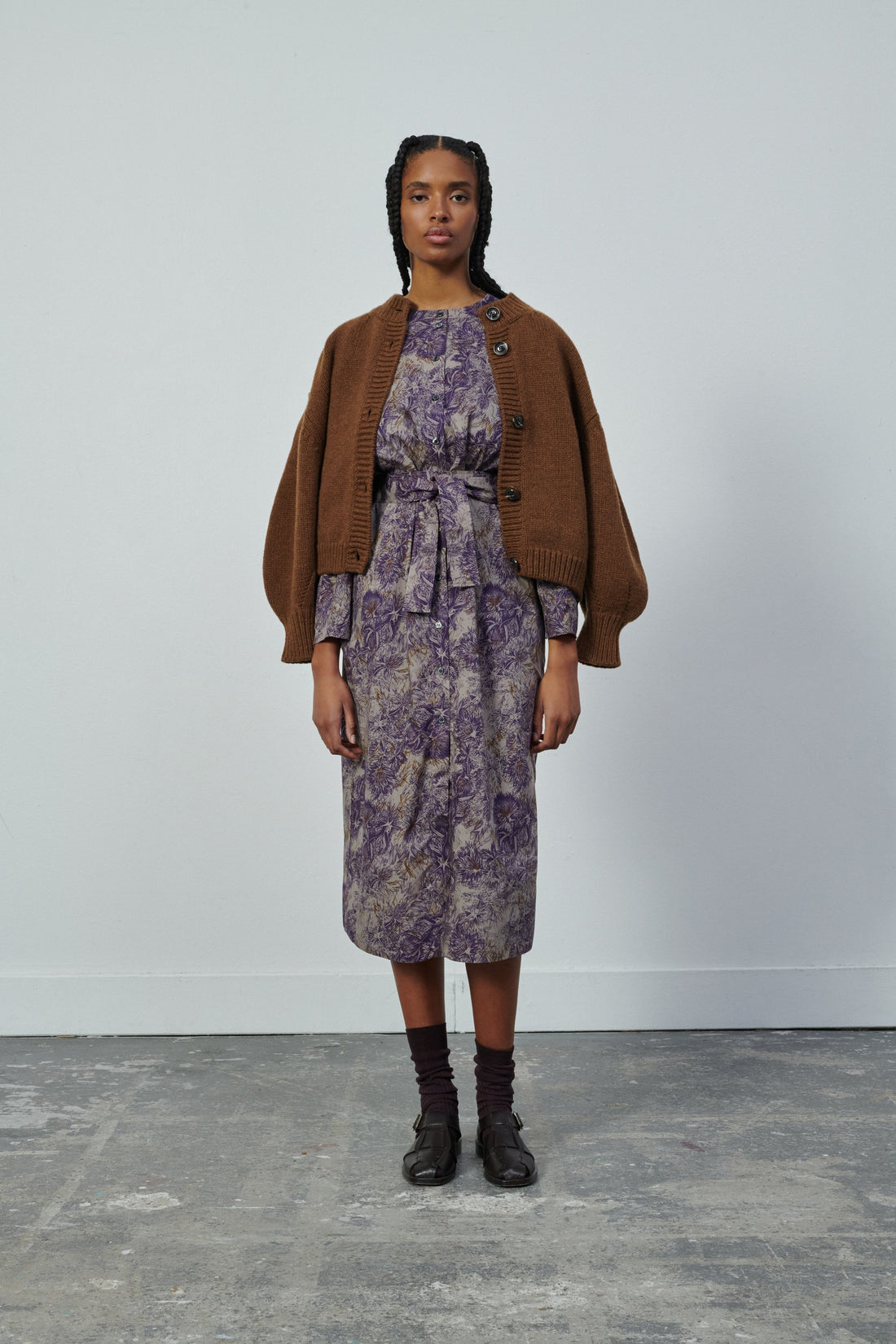 Robe en popeline de coton imprimée chataigne/violet