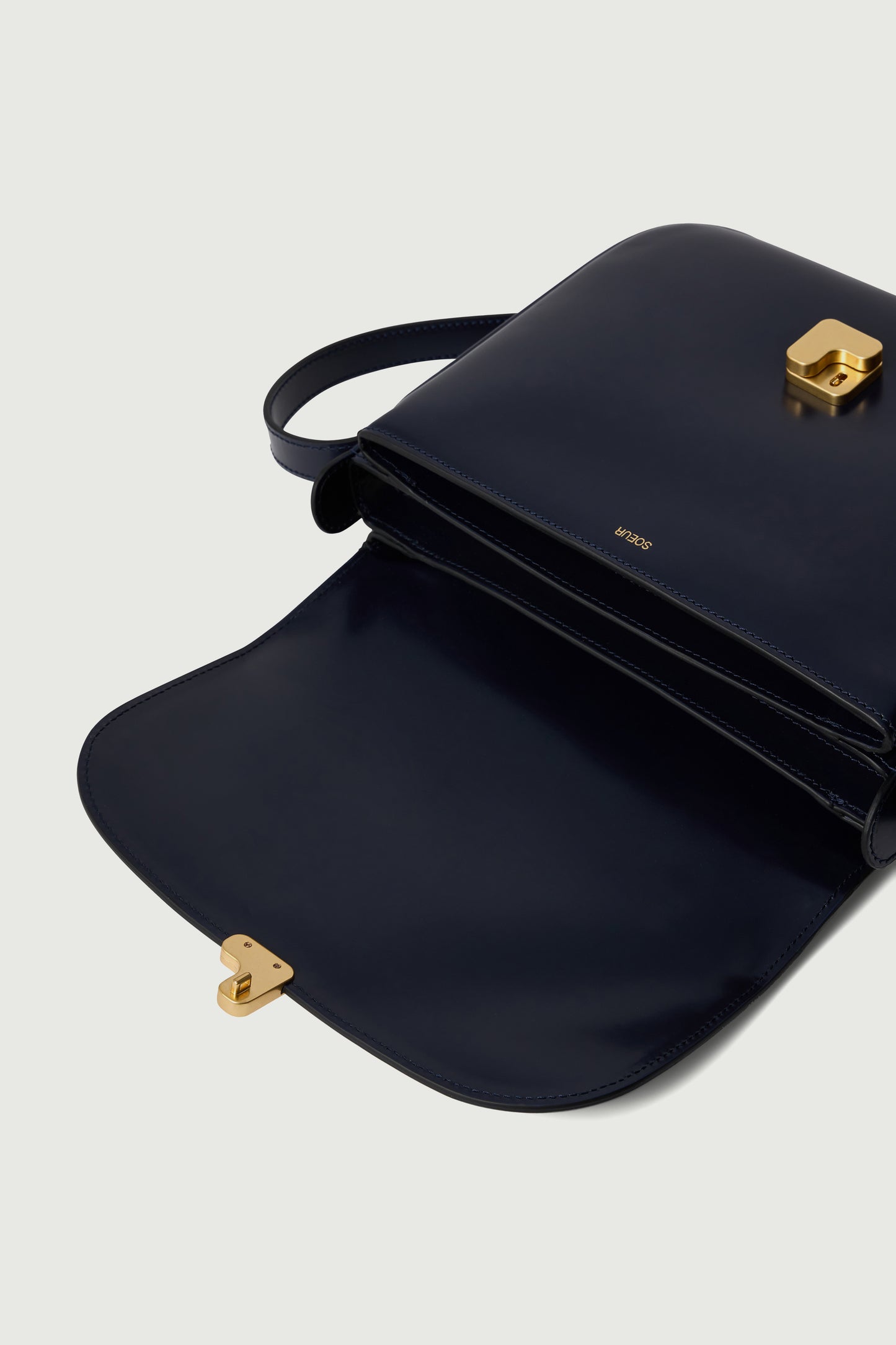 - Grand rabat devant avec fermoir monogramme "S" doré