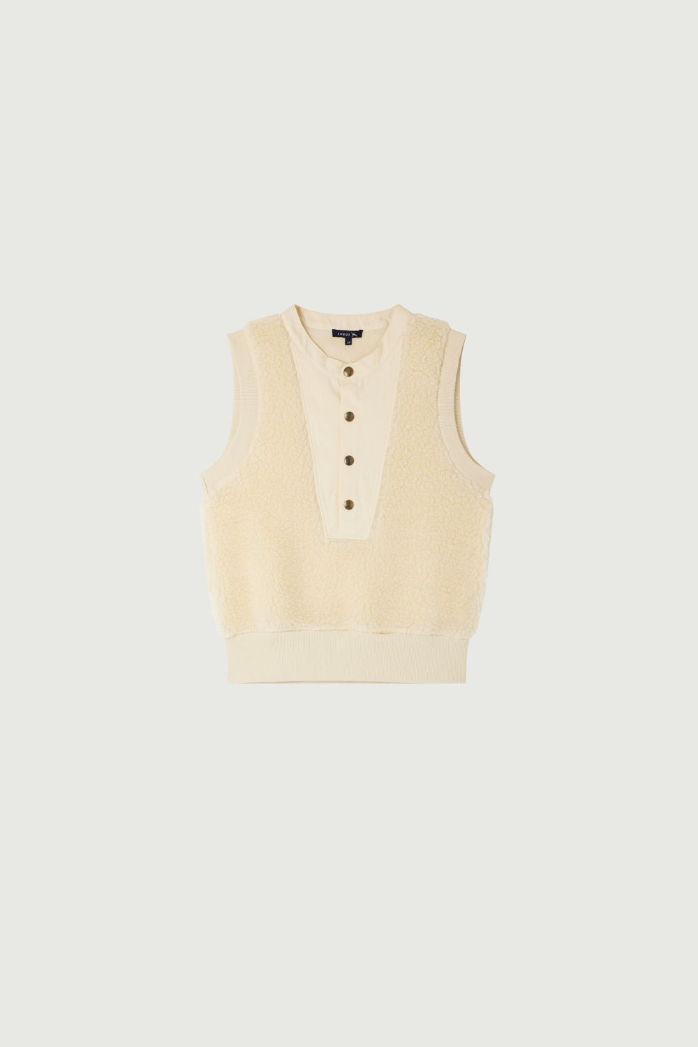 Sweat-shirt sans manches en fausse fourrure écru