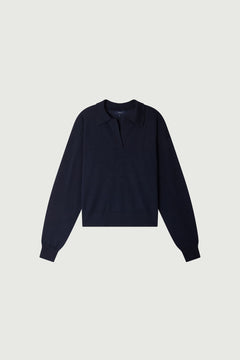 GIANI est une veste tailleur en gabardine de laine vierge bleu nuit. Son volume ample et son col tailleur rappellent les codes du vestiaire masculin. Entièrement doublée, elle assure confort et style.